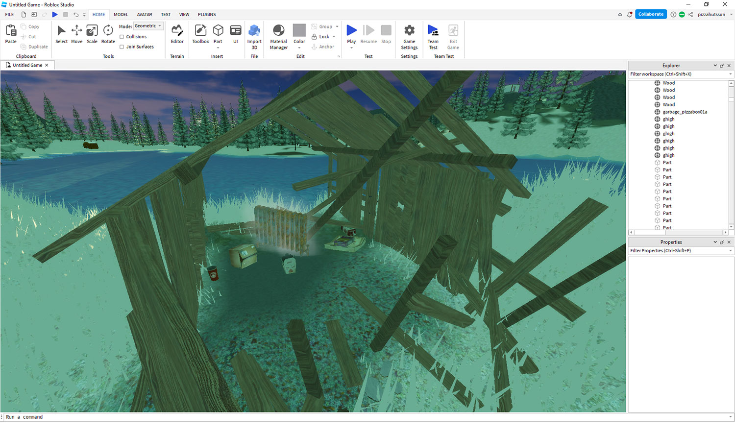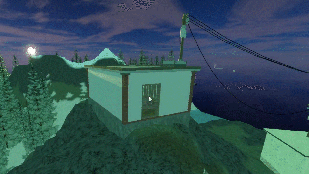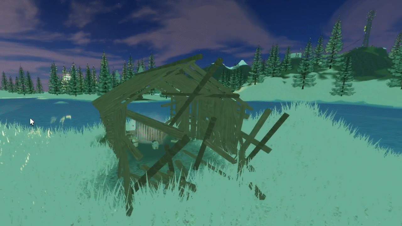 Modeling and animation are my two specialties in this game. The buildings I made are not there as a destination, or just a house you can visit. The house is used for warmth and story. The old cabin, pictured below, was a house for someone who lived, but it was destroyed by the yeti. The radio shack, also pictured below, is used for communication and to keep warm.